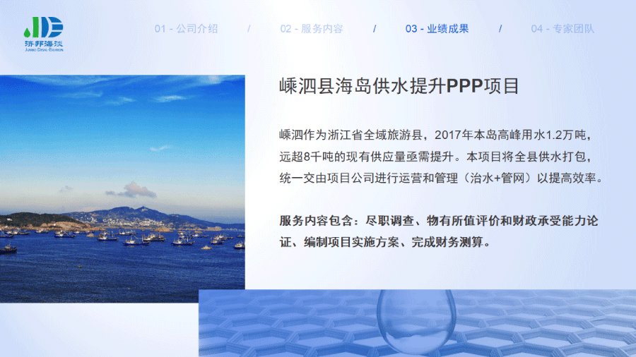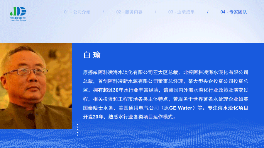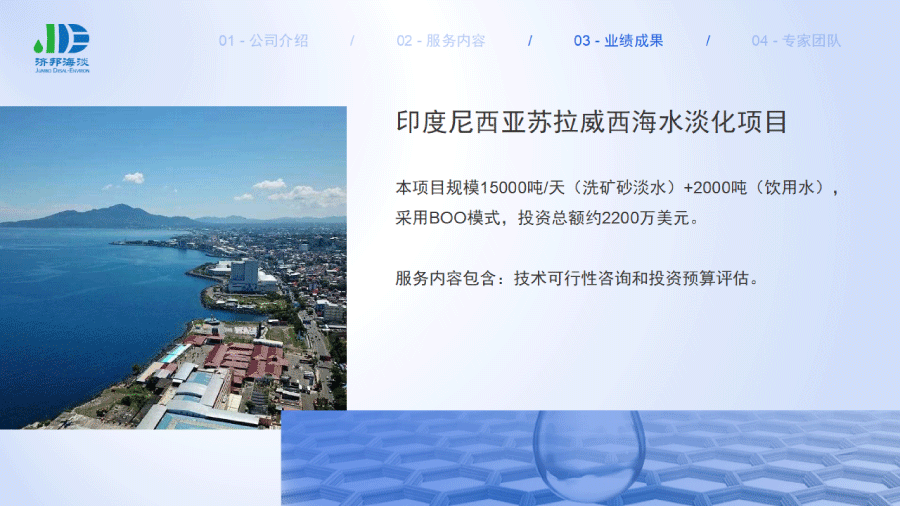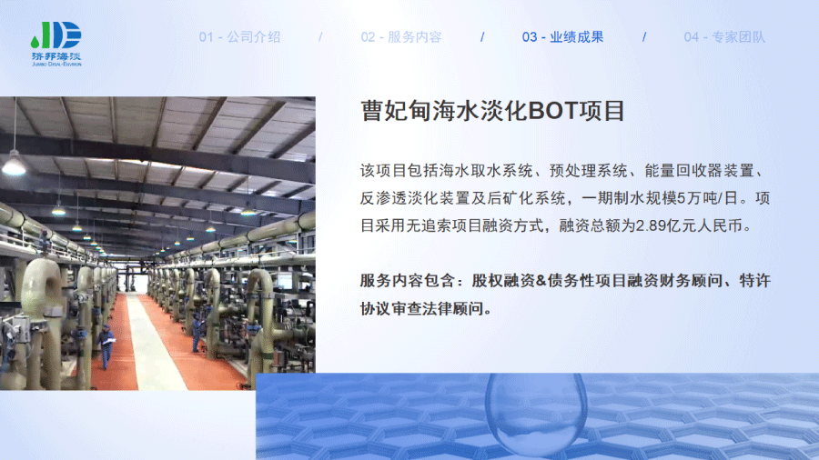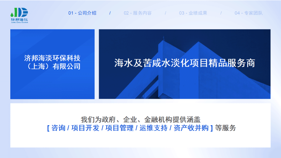 企業(yè)簡(jiǎn)介 組織架構(gòu) 子公司 - 濟(jì)邦國(guó)際有限公司 子公司 - 濟(jì)邦海淡環(huán)保科技(上海)有限公司 里程碑事件 分支網(wǎng)絡(luò) 服務(wù)行業(yè) 專業(yè)團(tuán)隊(duì) 九大業(yè)務(wù)領(lǐng)域 項(xiàng)目業(yè)績(jī) 出版叢書(shū) 行業(yè)影響